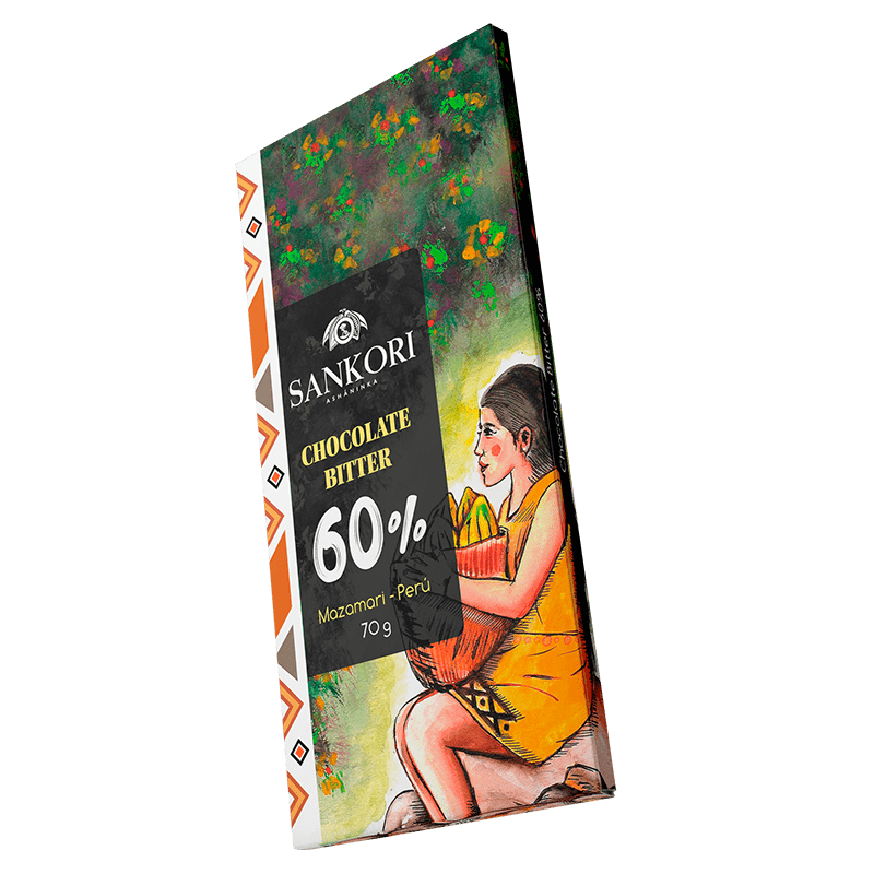 Chocolate bitter 70% cacao, El consumo frecuente estimula a mantener una sensación de bienestar, contribuye a prevenir problemas cardiovasculares. Puede ser utilizada como chocolate de taza, postres, helados y bebidas frías. Somos una organización el cual mantiene un lazo directo con el agricultor de cacao de la zona del #VRAEM en Junín.